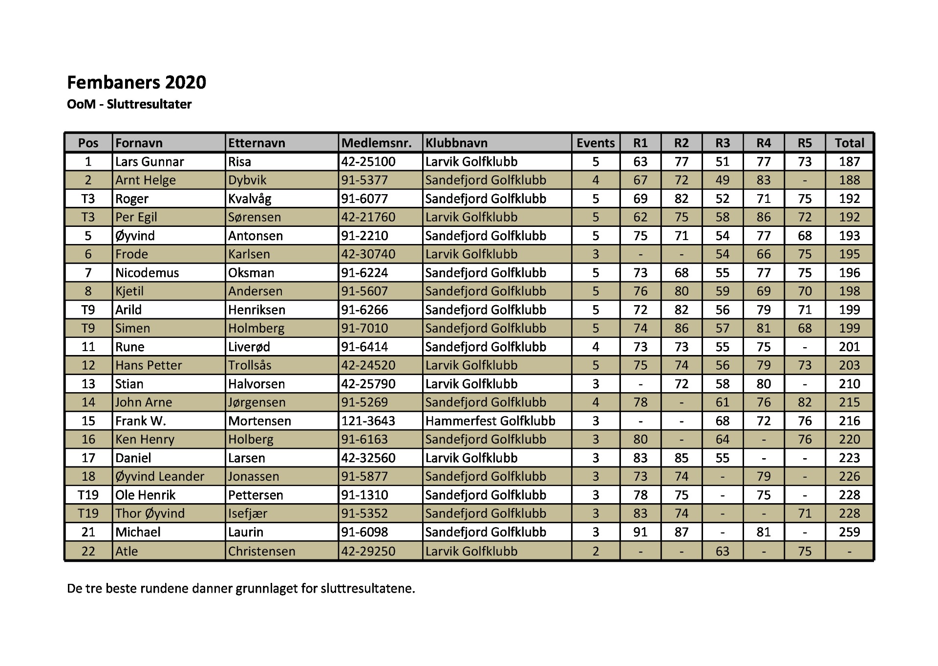 Runde 5 - 1.august 2020 - Larvik Golfbane / Resultater